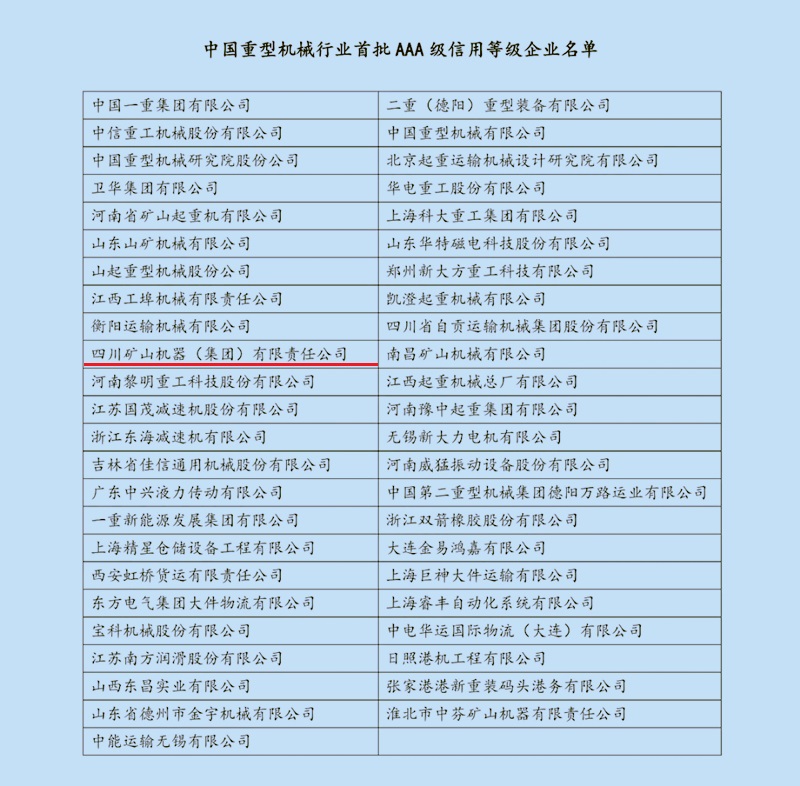以下為中國重型機械行業(yè)首批AAA級信用等級企業(yè)名單: