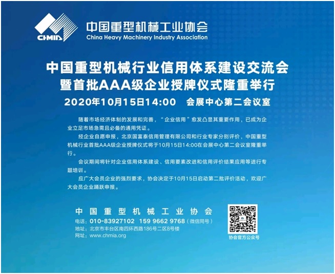 為深入貫徹落實國務(wù)院《社會信用體系建設(shè)規(guī)劃綱要(2014-2020)》,著力推動中國重型機械行業(yè)信用體系建設(shè),規(guī)范行業(yè)市場秩序,增強企業(yè)信用意識,促進行業(yè)持續(xù)和諧健康發(fā)展,由中國重型機械工業(yè)協(xié)會開展的首批中國重型機械行業(yè)企業(yè)信用等級評價工作,經(jīng)行業(yè)專家評審會嚴(yán)格評審于日前揭曉,包括川礦集團在內(nèi)的共計49家企業(yè)榮膺“中國重型機械行業(yè)首批AAA級信用等級企業(yè)”,近日將進行隆重的授牌儀式。