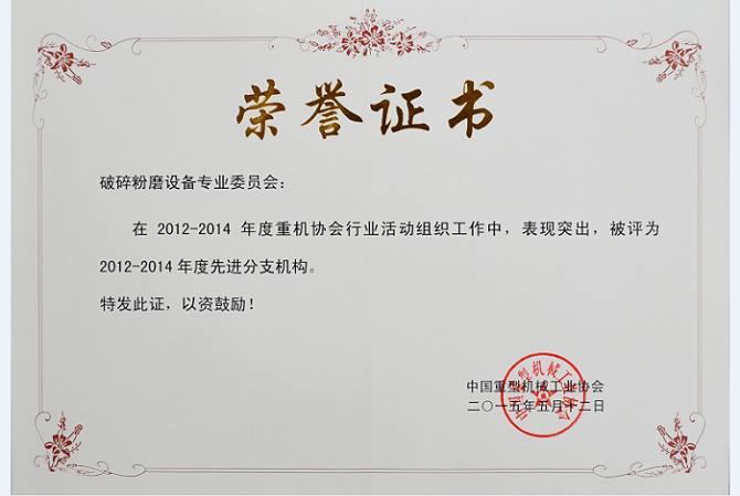 2015年5月11日至13日,以“適應新常態(tài),尋找新動力,謀求新發(fā)展”為主題,中國重型機械工業(yè)協(xié)會六屆四次會員代表大會暨理事會在北京順利召開。會議審議并通過了常務副理事長李鏡作的《在新常態(tài)中創(chuàng)出行業(yè)發(fā)展的新空間》工作報告、秘書長岳建忠作的《財務報告》,表彰了優(yōu)秀分支機構,我破碎粉磨設備專業(yè)委員會受到總會的表彰。