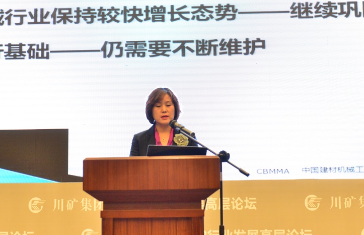 中國建材機械工業(yè)協(xié)會常務副會長、全國建材裝備標準化技術委員會秘書長王玉敏作題為《建材機械行業(yè)發(fā)展及轉型思考》的演講
