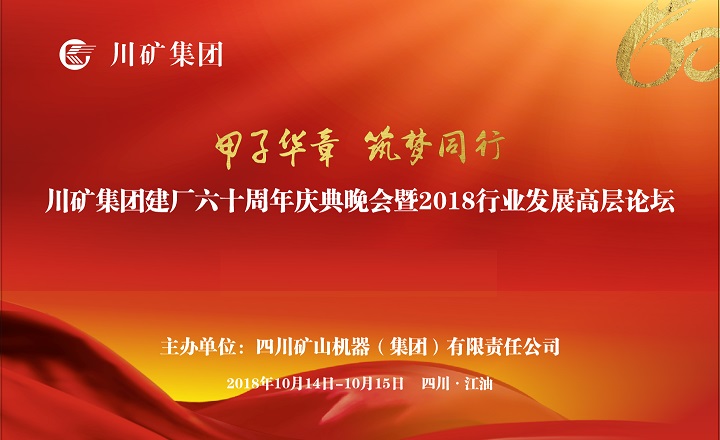 2018年10月14-16日,在走過了六十載輝煌歷程之際,川礦集團以“甲子華章,筑夢同行”為主題,在李白故里江油市隆重舉辦了一系列大型活動,隆重慶祝川礦六十華誕,抒發(fā)豪情,策勵未來。當?shù)卣鞑块T領導、130多家應邀來自全國各地的新老客戶,以及川礦集團新老員工齊聚一堂,共襄盛典,處處呈現(xiàn)出一派熱烈、祥和、歡樂、喜慶氣氛。原中組部副秘書長、中央政策研究室副主任鄭科揚等領導或專門發(fā)來賀信,或以賀電等其他方式,紛紛向川礦集團表示祝賀。