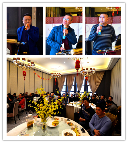 圖為部分銷售部門負責人在會上發(fā)言和會場場景